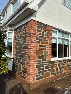 Once the site was made safe and fully prepared, we rebuilt the affected areas using a combination of brickwork corners and high-quality blue pennant stone, chosen to complement the traditional character of the property while providing long-lasting durability. Our team paid close attention to detail throughout the rebuild, matching the stonework as closely as possible and ensuring strong, well-aligned joints. The finished result is a secure, attractive, and structurally sound section of masonry that restores both the appearance and integrity of the building.
