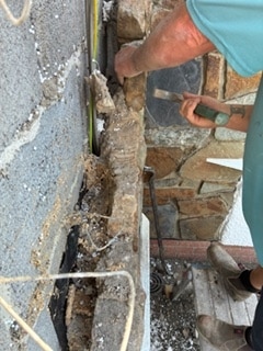 We recently completed a specialist stonework project in Neath, South Wales, involving the careful removal and reconstruction of unsafe masonry. The existing stonework had deteriorated to a point where sections posed a structural and safety risk, so our first step was to carry out a controlled takedown, ensuring all loose or unstable areas were removed without causing further damage to the surrounding structure.